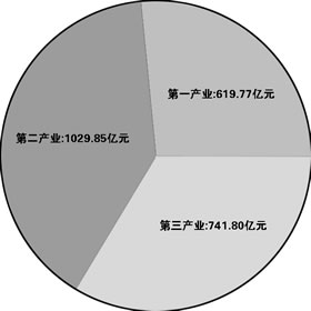全省生產(chǎn)總值首次突破5000億元大關(guān),達(dá)到5401.71億元,按可比價格計算,比上年增長9.4%,增幅高于全國平均水平0.3個百分點(diǎn)。其中,第一產(chǎn)業(yè)完成增加值798.35億元,增長5.8%;第二產(chǎn)業(yè)增加值2580.58億元,增長9.7%。三次產(chǎn)業(yè)結(jié)構(gòu)由2002年的14.2∶49.2∶36.6調(diào)整為14.8∶47.8∶37.4,第三產(chǎn)業(yè)比重進(jìn)一步提高。