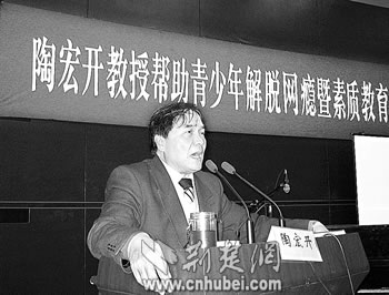 一襲并不時尚的米色風(fēng)衣,一套普通的深色西裝,中等身材,高額闊臉,面色健康,頭發(fā)略有花白。快人快語,不時夾雜幾句“Yes”“No”,講到激動處有些口吃。這便是“青少年網(wǎng)絡(luò)愛心大使”、59歲的華中師范大學(xué)特聘教授陶宏開。從間接了解,到直接接觸,從報告會、座談會,到面對面采訪,連日來,記者就這樣走近陶宏開——