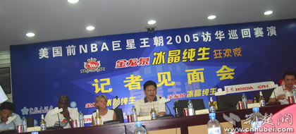荊楚網(wǎng)消息(記者吳彬彬)美國(guó)前NBA巨星王朝2005年訪華巡演記者見面會(huì)于今天下午3:20在武漢弘毅酒店召開。