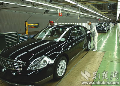 今年8月28日,記者在東風(fēng)襄樊基地,拍下了天籟生產(chǎn)線一輛輛高檔轎車下線的鏡頭。