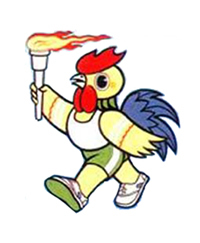 本屆運(yùn)動(dòng)會(huì)會(huì)徽造型為一個(gè)火炬,吉祥物為金雞,取名為明明,會(huì)歌為《五星邀五環(huán)》。