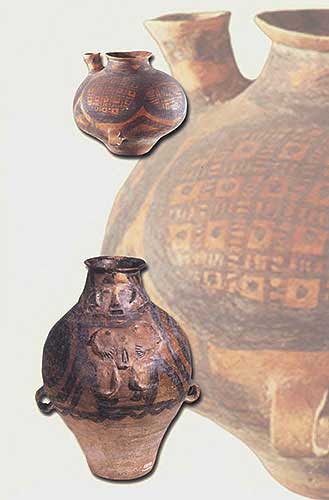 彩陶人像陶壺:水器(下,高34厘米)[相關鏈接]:20世紀中國百項考古大發(fā)現(1-20)21、大溪遺址(圖)22、城頭山遺址(圖)23、屈家?guī)X遺址(圖)24、崧澤遺址(圖)25、馬家窯遺址(圖)26、柳灣墓地(圖)27、牛河梁遺址(圖)28、城子崖遺址(圖)29、良渚文化遺址群(圖)30、石家河遺址群(圖)31、陶寺遺址(圖) 32、王城崗遺址(圖)33、齊家坪遺址(圖)34、卡若遺址(圖)35、石峽遺址(圖) 36、東灣仔北遺址(圖)37、圓山遺址(圖)38、二里頭遺址(圖)39、東下馮遺址(圖)40、夏家店遺址(圖)