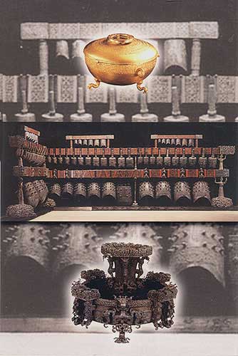 銅編鐘:樂器(中,鐘架高265~273厘米)