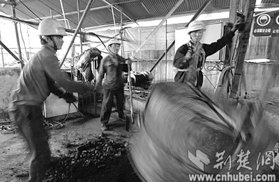 復雜的地質(zhì)結(jié)構(gòu)讓先進的機械設備使不上勁,百米深的樁基只能靠人工來完成。本報記者楊平攝