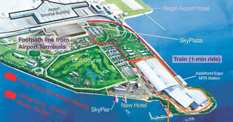 亞洲國際博覽館選址大嶼山香港國際機(jī)場附近,可通過完善的海陸空交通網(wǎng)絡(luò),連接全球各大主要城市。渡輪服務(wù)和完備的陸路交通配套設(shè)施,將博覽館連接至珠江三角洲城市及澳門等地。亞洲國際博覽館是香港展覽業(yè)持續(xù)發(fā)展的重要建設(shè)項(xiàng)目,將與現(xiàn)在位于灣仔的香港國際會(huì)展中心形成互補(bǔ)。