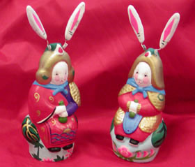 北京民俗專家王作楫先生認(rèn)為,兔兒爺更能代表北京城的形象。因為每個城市都有自己的“城市性格”,而兔兒爺在人們心里一直都是北京城的保護(hù)神。兔兒爺一般出現(xiàn)在八月十五,有團(tuán)團(tuán)圓圓的意思,這也離奧運會開始的時間相差不多,可以反映全世界運動健兒的大團(tuán)圓。