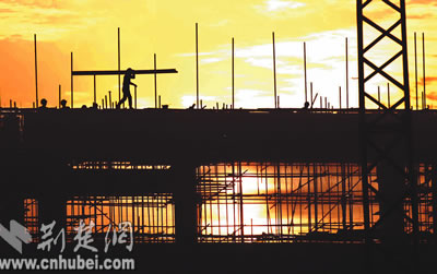 昨日,省藝術館建筑工地上,工人師傅迎著朝霞在樓頂做清理工作。當日,省藝術館主體工程封頂。據了解,省藝術館是為第八屆中國藝術節(jié)在我省舉辦而興建的重要場館,占地面積二十三畝,建筑總面積二萬多平方米,預計于明年底竣工。