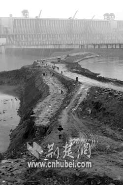 1993年10月,三峽工程一期圍堰在右岸開始施工。在中堡島左側及后河上下游修筑了一期土石圍堰,形成基坑。然后抽干基坑內(nèi)積水在圍堰保護下挖除中堡島,擴寬后河修建導流明渠和混凝土縱向圍堰,為大壩建設做準備。1997年7月,完成任務的一期圍堰被拆除。