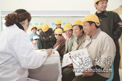 昨日和他一起接受免費體檢的,還有另外在百步亭從事建設的400多名農(nóng)民工。