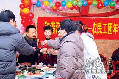 昨日中午,漢陽區(qū)文明辦、建管站和勞動局等部門請來40多名農(nóng)民工代表,和區(qū)領(lǐng)導(dǎo)一起吃年飯,這是漢陽區(qū)“文明和諧社區(qū)建設(shè)迎春行動”的系列活動之一。
