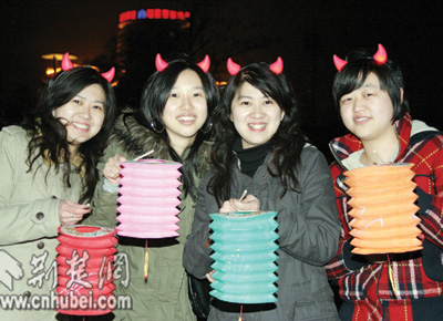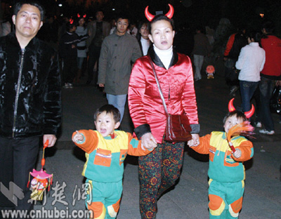 中山公園里,一對(duì)對(duì)情侶紛紛登上湖中的小舟,在燭光中許下愛(ài)情的誓言。25歲游客小敏舉著燈籠,偎依在男友的懷里,羞澀地笑著告訴記者:“今天我同意嫁給他了,這是我們金豬年最大的喜慶。”