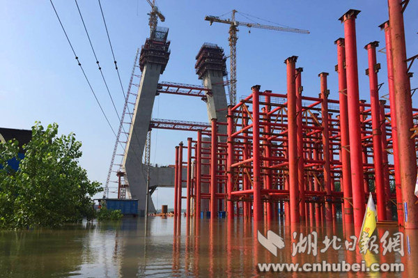 湖北日報網(wǎng)訊(全媒體記者江萌 通訊員周漓)連日來,受湖南持續(xù)暴雨、三峽水庫加大下泄流量等因素影響,長江咸寧段水位持續(xù)超警戒,湖北省重大工程嘉魚長江大橋項目工地部分區(qū)域被江水淹沒,防汛現(xiàn)場多次出險。經(jīng)科學調(diào)度指揮,5日長江1號洪峰順利通過嘉魚。截至6日晚,大橋南北主塔、橋梁預制廠及數(shù)百個墩柱均未出現(xiàn)任何損壞。