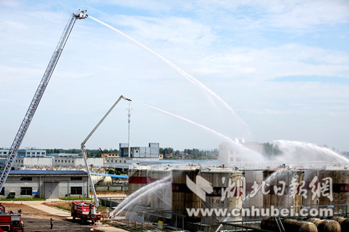 湖北日?qǐng)?bào)網(wǎng)訊(全媒體記者張文龍 通訊員朱燕林、王孫致遠(yuǎn))12日,咸寧市政府組織消防、安監(jiān)、環(huán)保、衛(wèi)生、氣象等多部門,在嘉魚縣潘灣工業(yè)園湖北鶴翔工業(yè)有限公司舉行全市危險(xiǎn)化學(xué)品生產(chǎn)安全事故應(yīng)急救援演練。