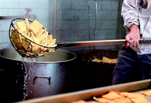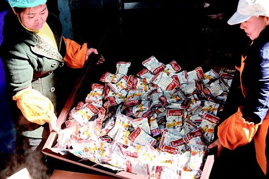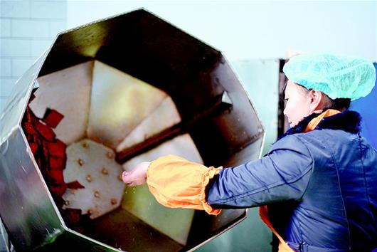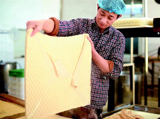 湖北日?qǐng)?bào)訊 通城麥?zhǔn)械穆槔备勺悦鞒家褌鞒形灏儆嗄甑臍v史,從民間傳統(tǒng)手工制作到現(xiàn)代流水線生產(chǎn),如今已形成了一定的規(guī)模。制作的原材料包括黃豆、香料、食鹽、雞精、辣椒油等,在保證傳統(tǒng)豆制品高營(yíng)養(yǎng)的同時(shí),運(yùn)用了特殊的鹵制技術(shù),融色香、味美、辣、脆于一體。其濃郁的農(nóng)家風(fēng)味成為大街小巷的一大特色小吃,熱銷(xiāo)廣東、浙江、江西及湖北各地。(視界網(wǎng) 劉建平 攝)