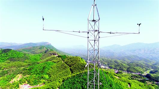 湖北日?qǐng)?bào)訊 圖為:咸安區(qū)白云山風(fēng)電項(xiàng)目測(cè)風(fēng)塔。(湖北日?qǐng)?bào)全媒記者 陳勇 攝)