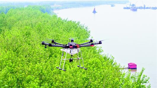 湖北日報訊 6月12日,在嘉魚縣長江干堤陸溪段,無人機在防浪林上空噴灑低毒無殘留農(nóng)藥,防治病蟲害。近期,嘉魚段長江防浪林出現(xiàn)了蟲卵和幼蟲,嘉魚縣林業(yè)局迅速進(jìn)行綜合防治,全面維護(hù)從陸溪至簰洲灣109公里長江沿線及洲灘6萬余畝楊樹林。