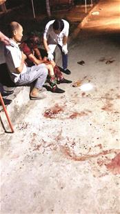 圖為:婆婆被救下,地上滿是血跡