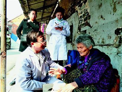 “耿婆婆好!我們來看您了?!痹谝蛔戏孔忧?,86歲的耿良英老人正在曬太陽??吹絼⑨t(yī)生,她手指著胸口說:“我的胃病又犯了,還頭暈,正想給你們打電話呢?!眲⑨t(yī)生仔細(xì)詢問,量體溫、測(cè)血壓,看老人體溫、血壓都正常,就叮囑老人按時(shí)服藥,并讓護(hù)士小尹在老人常備藥的包裝上寫清用法,隨后兩人繼續(xù)巡診。每月固定巡診兩次,隨時(shí)接受病人及家屬咨詢,緊急情況隨叫隨到。這是他們提供簽約家庭醫(yī)養(yǎng)服務(wù)內(nèi)容的標(biāo)配。
