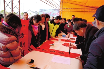 書法家現(xiàn)場為群眾書寫春聯(lián)