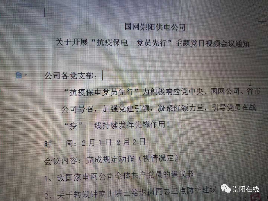 (桂薪雄) 2月2日上午9時,龔云兵在學(xué)習(xí)強(qiáng)國app上,主持開展了國網(wǎng)咸寧崇陽縣供電公司金塘黨支部第一次視頻黨員大會。