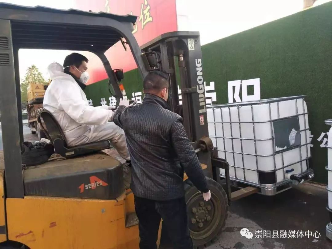 1月30日,河北省唐山瑞隆交通設(shè)施有限公司董事長郭俊章決定向崇陽縣捐贈10噸醫(yī)用酒精,并約定在河南省信陽市交接。當晚9時,石強緊急聯(lián)系好拖運車輛,并親自帶隊,帶領(lǐng)?;陕毠ひ煌瑓⒓涌缡⊥线\任務(wù)。