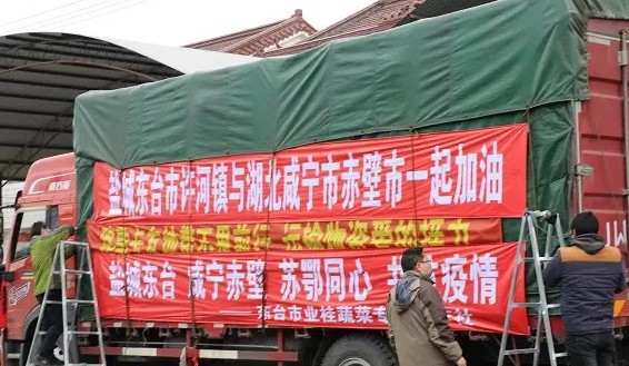 “同志,您好,我們是江蘇鹽城東臺(tái)的,我們拖運(yùn)來(lái)了捐贈(zèng)蔬菜,請(qǐng)問(wèn)……”