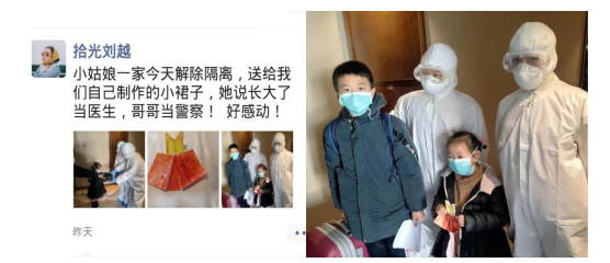 隔離解除,依依惜別,萌娃兄妹把精心制作的手工,送給日夜相伴的“拾光劉越”等醫(yī)護(hù)人員。“長大也要當(dāng)醫(yī)生、當(dāng)警察?!敝蓺獾脑捳Z,讓“拾光”感動。