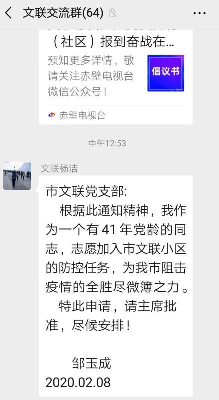 “我作為一個有41年黨齡的同志,志愿加入市文聯(lián)小區(qū)的防控任務,為我市阻擊疫情的全勝盡微薄之力……”
