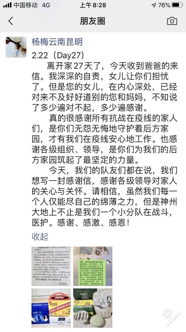 今天,我們的隊友們都在說,我們想寫一封感謝信,感謝各級領(lǐng)導(dǎo)對家人的關(guān)心與關(guān)懷。請相信,雖然我們每一個人僅能盡自己的綿薄之力,但是神州大地上不止是我們一個醫(yī)護小分隊在戰(zhàn)斗。感謝、感激、感恩!
