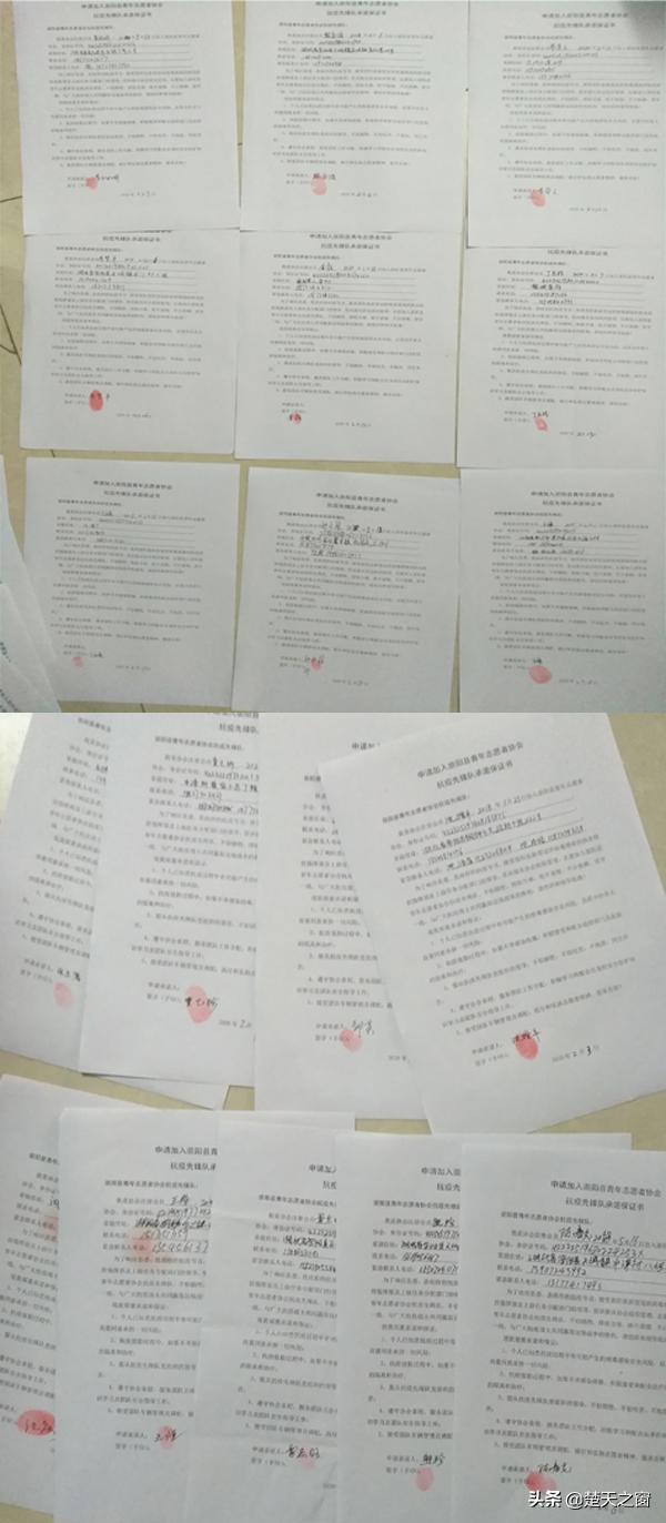 萬一感染了病毒怎么辦?早在成立崇陽縣青年志愿者協(xié)會抗疫先鋒隊時,沈增平就第一個帶頭和隊員們一起簽下了承諾保證書“個人知悉所有風(fēng)險和自愿承擔(dān)一切責(zé)任,抗疫值勤過程中,如果不幸感染病毒,積極接受和配合政府部門及醫(yī)院的隔離和治療;服從抗疫先鋒隊黨組織的領(lǐng)導(dǎo),不怕犧牲......”并按下了一個個鮮紅的手印。