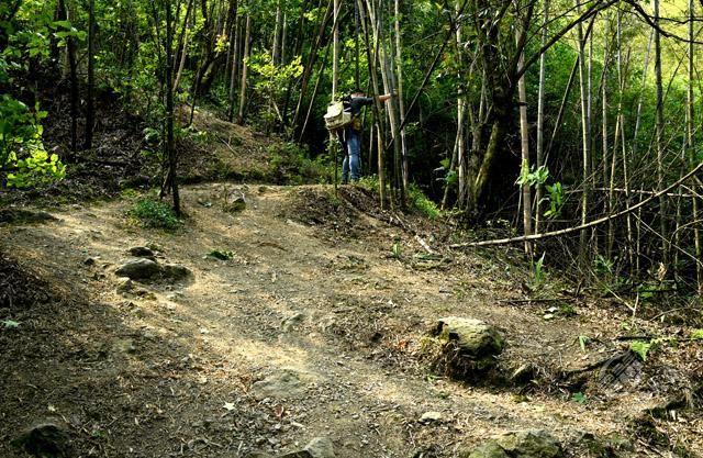 從烈士陵園旁沿著彎彎曲曲的山路,艱難地穿梭在險峻的山間,探尋曾經(jīng)發(fā)生過故事的革命之地。經(jīng)過“百步十八彎”“愛泉”“云天井”,歷經(jīng)一個多小時到達“虎歇坪”,終見紅艷艷的杜鵑花,開在崎嶇險路兩旁。