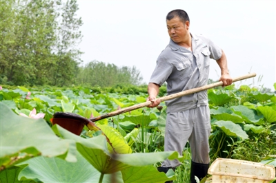 3日,嘉魚縣陸溪鎮(zhèn)界石村鴨兒湖養(yǎng)殖專業(yè)合作社,負(fù)責(zé)人龔木前在野藕基地進(jìn)行生產(chǎn)自救。