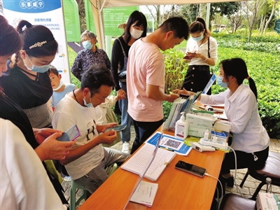 與此同時(shí),在官橋八組田野鄉(xiāng)村公園開心農(nóng)場(chǎng)景區(qū)門前,筆者看到檢票處排起了長(zhǎng)隊(duì),游客們正有序地核銷預(yù)約二維碼、測(cè)溫、登記完后陸續(xù)進(jìn)入景區(qū)。景區(qū)內(nèi)隨處可見拍照合影、嬉戲玩耍的身影,洋溢著一派歡聲笑語(yǔ)的熱鬧景象。