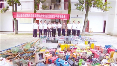 合力“嚴(yán)管”形成高壓。7月中旬以來(lái),組織執(zhí)法行動(dòng)211次,出動(dòng)執(zhí)法船艇和車輛230臺(tái)次,參與執(zhí)法人員1031人次,現(xiàn)場(chǎng)查獲并銷毀各類非法漁具632套、違法電捕設(shè)備21臺(tái)(套),查扣非法捕撈漁船2 艘,行政處罰54人,行政罰款1.4萬(wàn)元,批評(píng)教育300余人,刑事立案1起,形成了有效震懾。