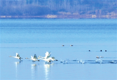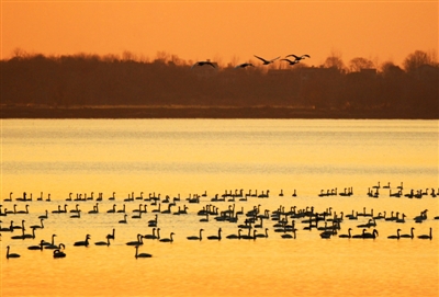 近年來,隨著退垸還湖和禁捕政策的實(shí)施,濕地生態(tài)環(huán)境持續(xù)改善,西涼湖水質(zhì)上升為二類后,為天鵝越冬創(chuàng)造了良好的棲息之地。