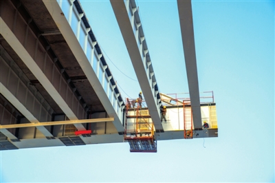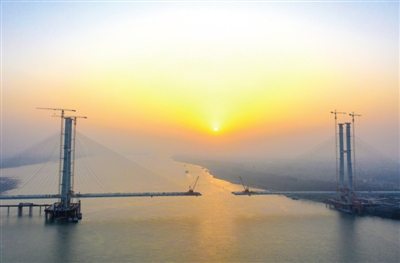 該橋南岸灘橋最后一孔50米的現(xiàn)澆箱梁已施工完畢。主跨橋梁也在不斷的實(shí)現(xiàn)合龍,目前合龍距離還剩76米。預(yù)計今年三月底實(shí)現(xiàn)合龍。