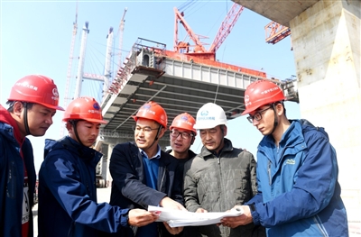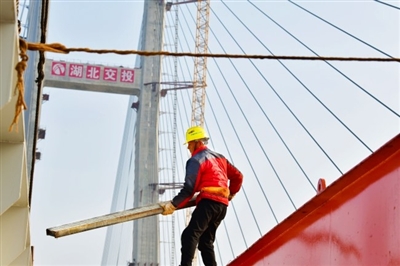 “今年春節(jié)因為趕工期和疫情防控,我還是選擇在工地過年?!?月13日,大年初二,記者走進赤壁長江公路大橋建設(shè)現(xiàn)場,30出頭的尹振君正和同事研究合龍技術(shù)方案,他已經(jīng)連續(xù)4年沒回家過年了。他們身后,大橋合龍僅剩最后的40米。