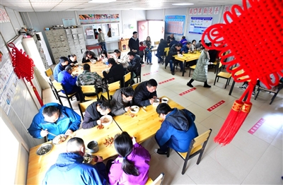 “項目部很貼心,給外地來的家屬準(zhǔn)備了很多過年物資,還給孩子們準(zhǔn)備了玩具?!痹诼毠に奚針窍拢忥w正帶著孩子們玩耍,她說,這里掛燈籠、貼春聯(lián)、糊窗花,在這里過年感受到了家一般的溫暖,年味濃濃。