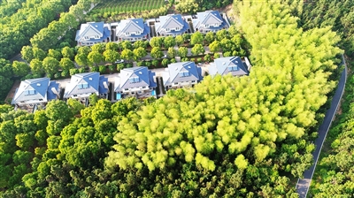 鳥(niǎo)瞰嘉魚(yú)縣官橋鎮(zhèn)八組,水波瀲滟的南湖、北湖盡收眼底,讓人賞心悅目;一棟棟造型別致的農(nóng)民別墅,鑲嵌在綠茵叢中,使人艷羨不已……