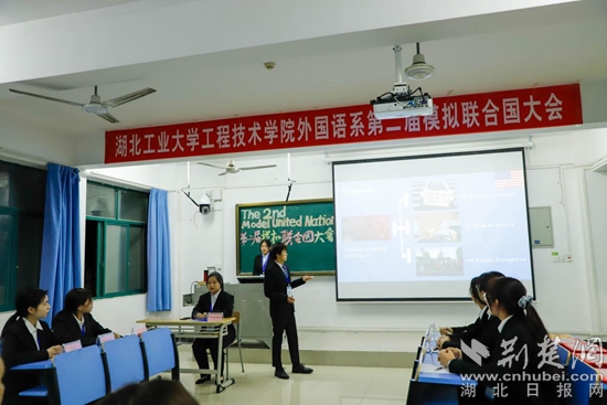 湖北工業(yè)大學(xué)工程技術(shù)學(xué)院外國(guó)語(yǔ)系第二屆模擬聯(lián)合國(guó)大會(huì)。通訊員 供圖
