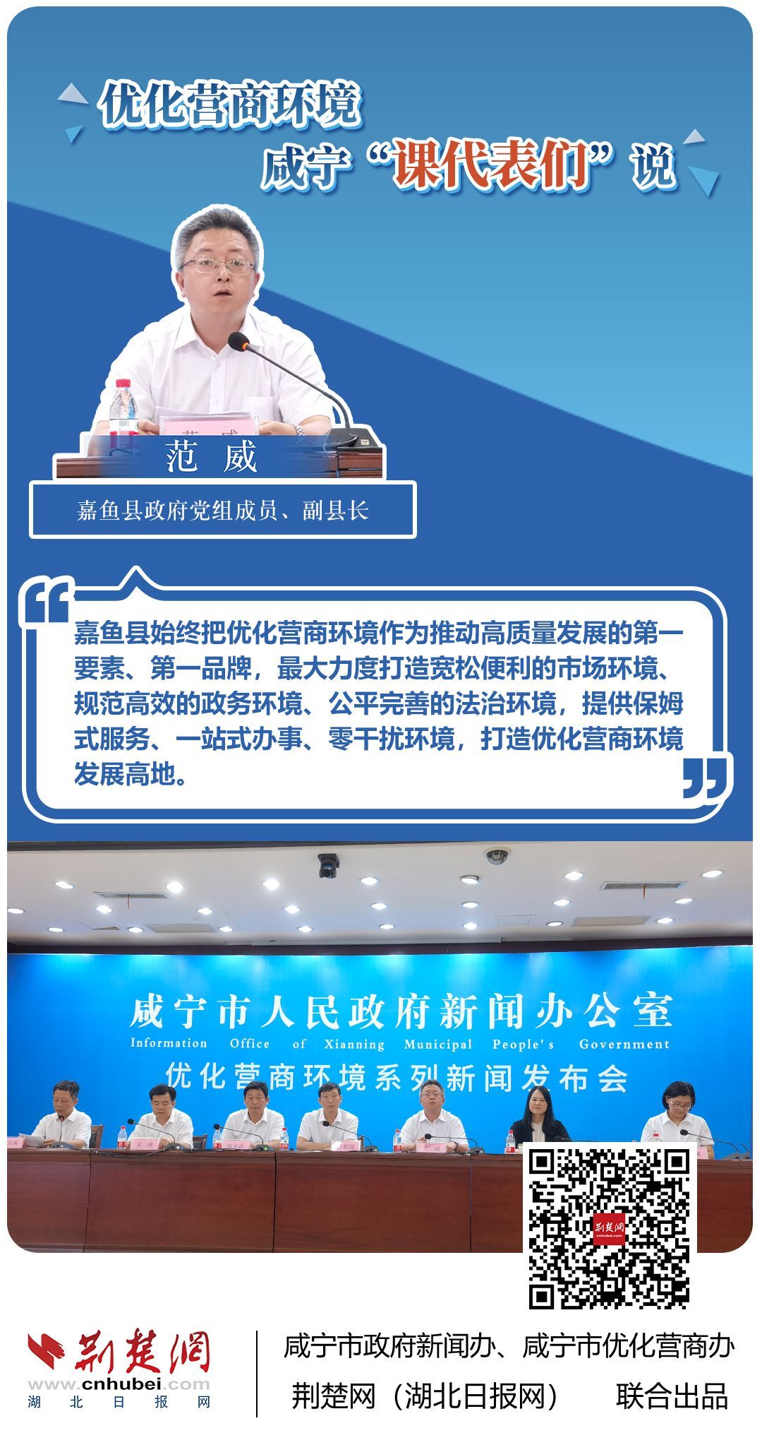 荊楚網(wǎng)(湖北日報網(wǎng))訊(記者 田城 通訊員 孫方成 張永紅)跨省通辦、“零干擾環(huán)境”、最簡流程優(yōu)服務(wù)、深化“放管服”改革、整肅行風(fēng)政風(fēng)……7月20日下午,咸寧市召開優(yōu)化營商環(huán)境新聞發(fā)布會。會上,咸安區(qū)、嘉魚縣、赤壁市、通城縣、崇陽縣、通山縣6個縣市區(qū)優(yōu)化營商環(huán)境發(fā)言人亮相,全面介紹當(dāng)?shù)貎?yōu)化營商環(huán)境有關(guān)情況,持續(xù)推進咸寧市營商環(huán)境朝著更優(yōu)、更好方向前進。