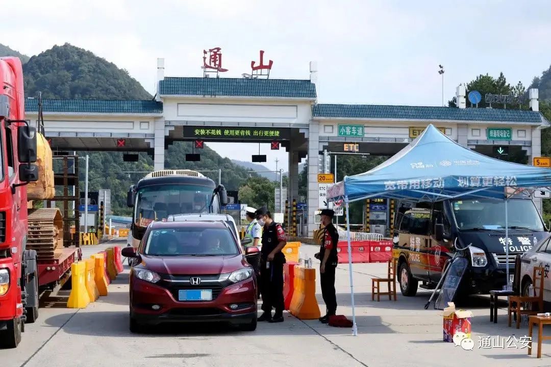 特巡警在山口檢查車輛及人員信息