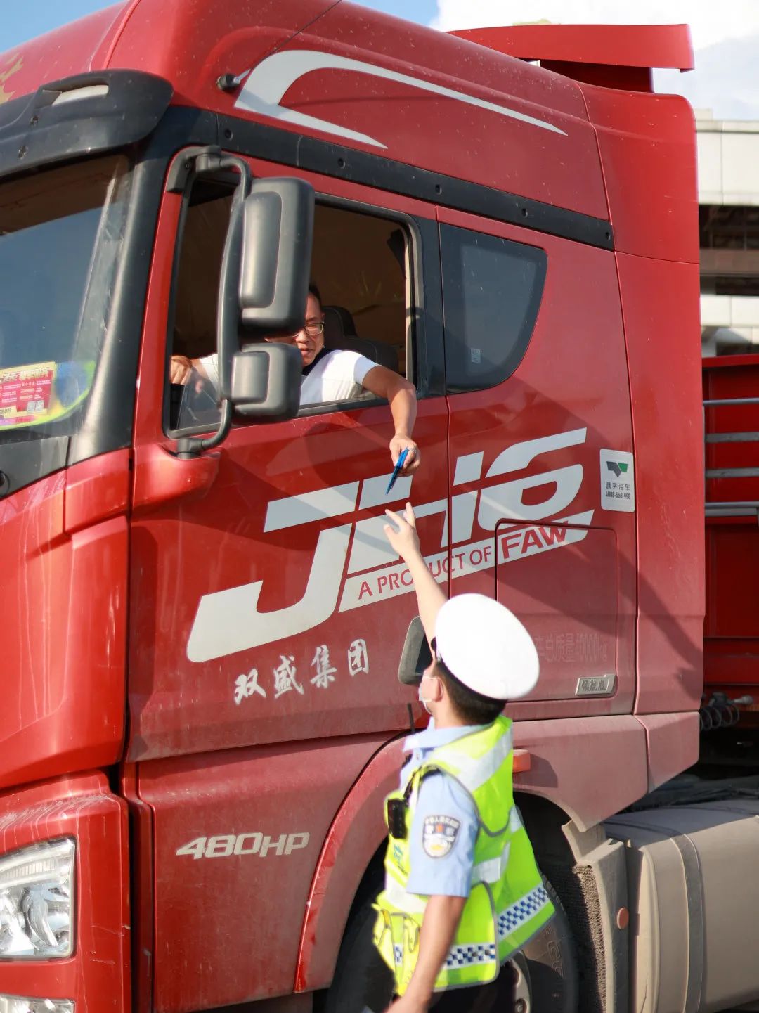 交警檢查司機(jī)行程碼