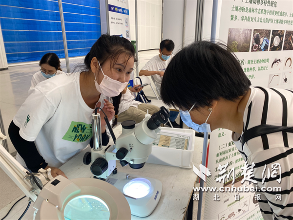 “蚯蚓是人類的好朋友。”來自中科院武漢植物園功能生態(tài)組的林小元正在展臺前指導(dǎo)市民通過顯微鏡觀察土壤和蚯蚓。她邊調(diào)試儀器邊介紹,蚯蚓是土壤動物里最常見類群之一,它們在土壤生態(tài)系統(tǒng)中既是“消費”者,也是“創(chuàng)造”者,它們通過取食、消化、排泄、分泌和挖掘洞穴等活動對土壤產(chǎn)生重要影響,被稱為“土壤工程師”。