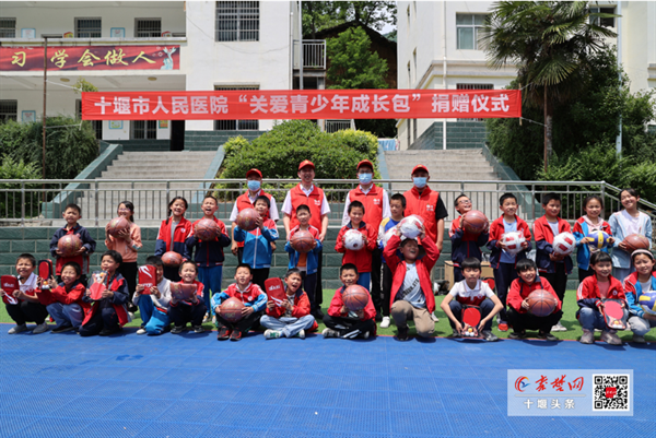 簡單用過午餐,鐘森顧不得午休,又帶領(lǐng)駐村工作隊同志,到槐樹林特場小學(xué),為孩子們送去特別的“六一禮物”——十堰人醫(yī)干部工捐贈的價值1.2萬元的15份“關(guān)愛青少年成長包”,每個“成長包”內(nèi)有一個籃球、一個排球、一個足球、一副羽毛球拍和兩筒羽毛球、一副乒乓球拍和一袋乒乓球,這些包含人醫(yī)情的“成長包”,將分配到全校六個年級,由班級管理、全體學(xué)生共享。孩子們抱著嶄新的節(jié)日禮物,開心得合不攏嘴,紛紛感謝十堰人醫(yī)叔叔阿姨們的愛心善舉。