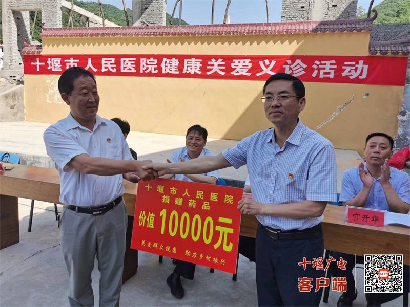 為提高當(dāng)?shù)亟】邓?,解決群眾實(shí)際困難,醫(yī)院總會計(jì)師譚向東代表十堰人醫(yī)現(xiàn)場捐贈了價(jià)值10000元的常用藥品。