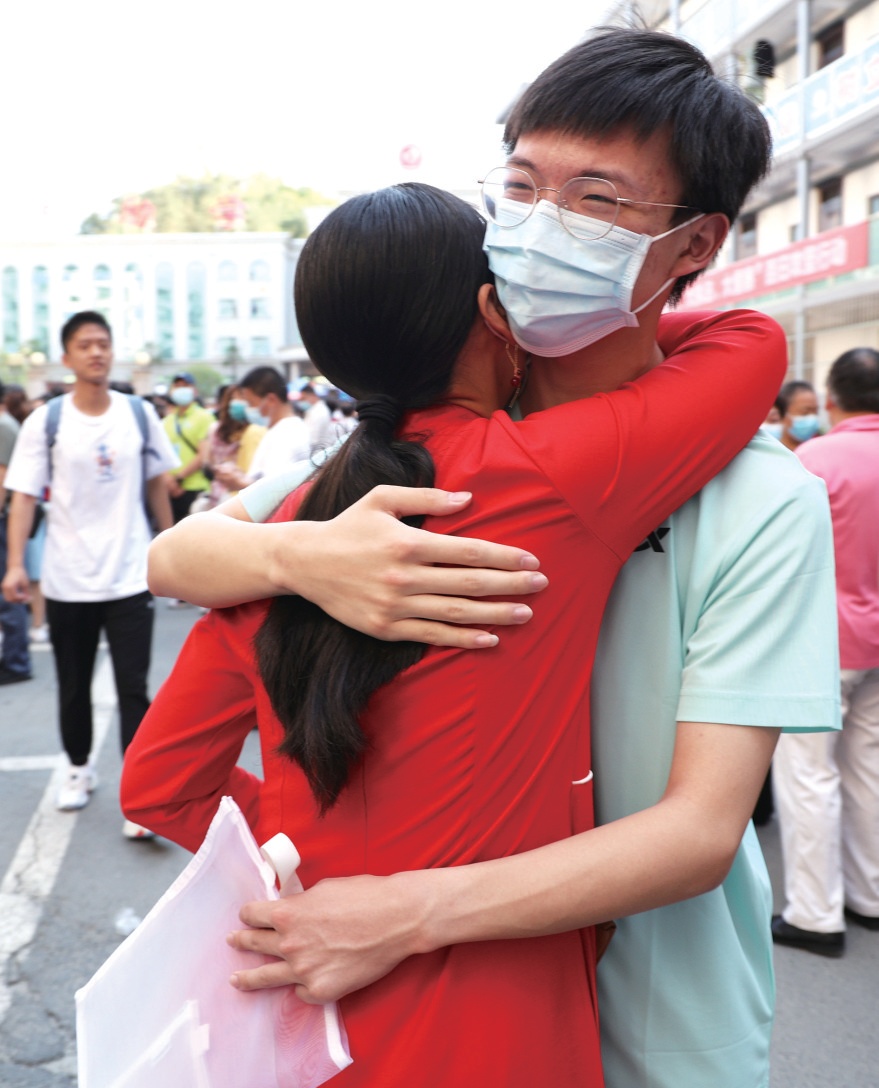 考場里,是對考生12年勤學(xué)苦讀的檢驗(yàn);考場外,是親人們的牽掛與期盼。臨進(jìn)考場前,走出考場后,一個(gè)緊緊的擁抱、一個(gè)自信的手勢、一個(gè)會心的微笑,舉手投足間都是滿滿的愛。文、圖/記者 張啟國 劉成臣
