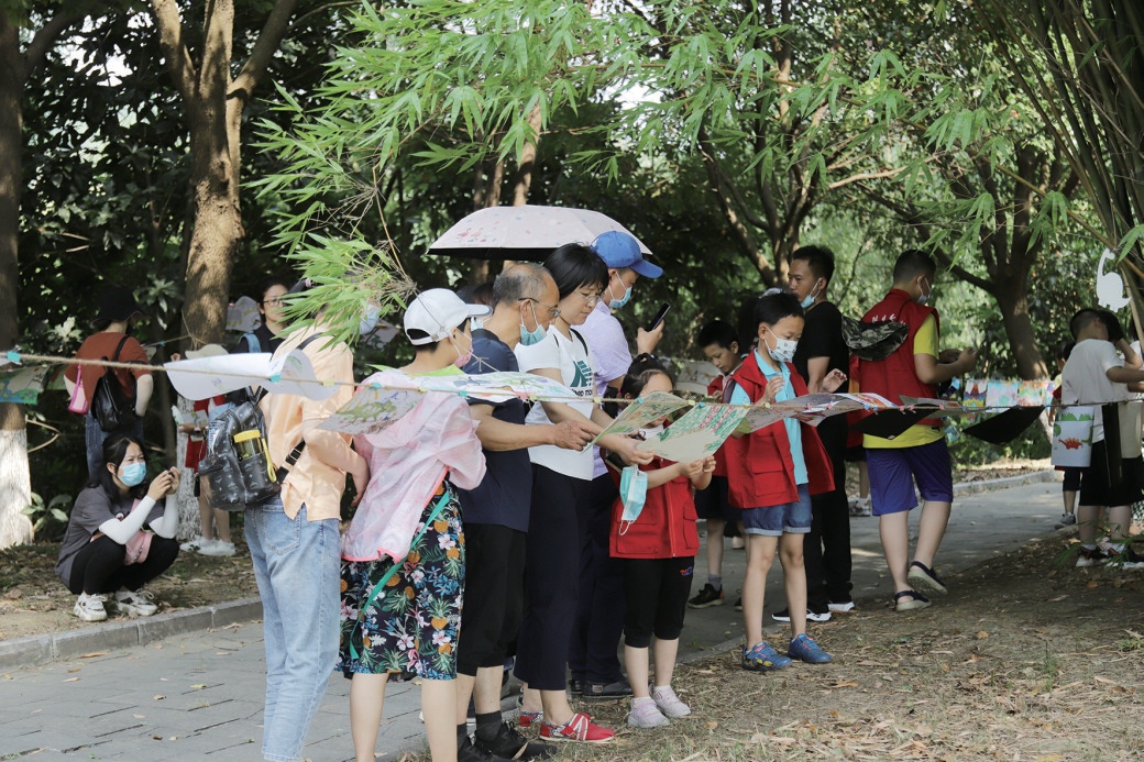 小記者及家長(zhǎng)參觀恐龍地質(zhì)遺跡科普獲獎(jiǎng)繪畫(huà)作品。