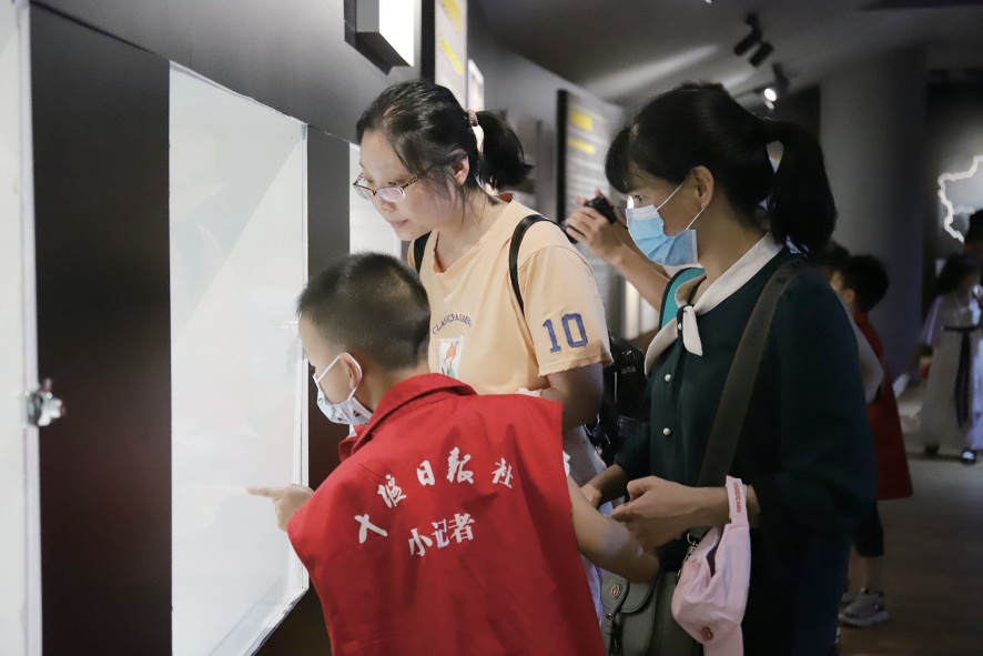 儀式結(jié)束后,家長(zhǎng)和孩子們受邀參觀科普作品展作品和博物館、遺址館?!斑@真是一個(gè)恐龍大世界,通過(guò)參觀我學(xué)到了很多知識(shí),看到了恐龍蛋化石遺址,了解到恐龍蛋有圓形、卵圓形、橢圓形、長(zhǎng)橢圓形等多種形狀?!毙∮浾呃仔狸?yáng)說(shuō)。
