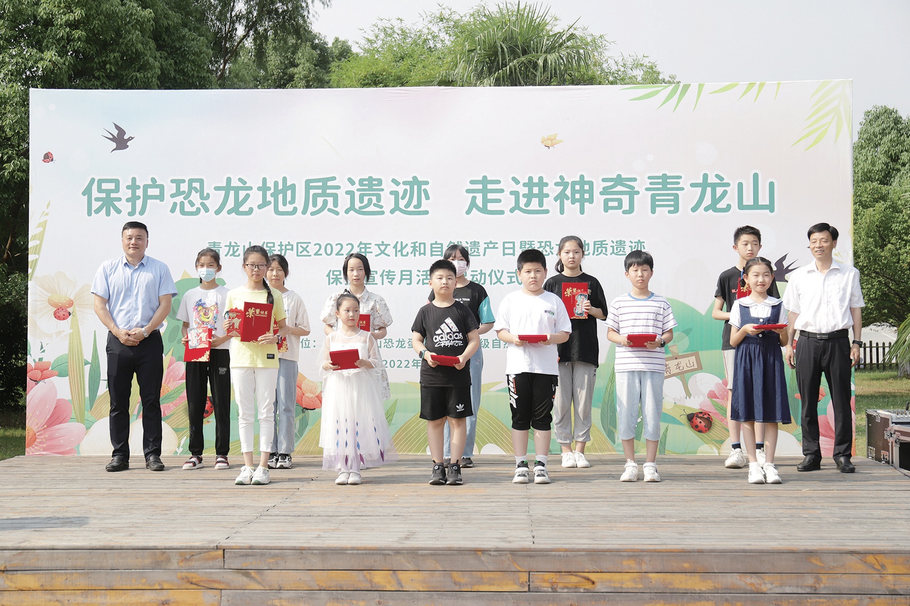 本報(bào)訊 6月11日是我國(guó)第6個(gè)文化和自然遺產(chǎn)日。為了更好保護(hù)青龍山恐龍蛋化石群這一世屬罕見(jiàn)的自然遺產(chǎn),喚醒大家珍愛(ài)地球、保護(hù)環(huán)境的意識(shí),當(dāng)日,湖北青龍山管理局在青龍山地質(zhì)公園舉行了2022年文化和自然遺產(chǎn)日暨恐龍地質(zhì)遺跡保護(hù)宣傳月活動(dòng)啟動(dòng)儀式。來(lái)自十堰日?qǐng)?bào)社小記者團(tuán)、媽媽幫社群的200余位學(xué)生、家長(zhǎng)朋友在現(xiàn)場(chǎng)參加活動(dòng)。